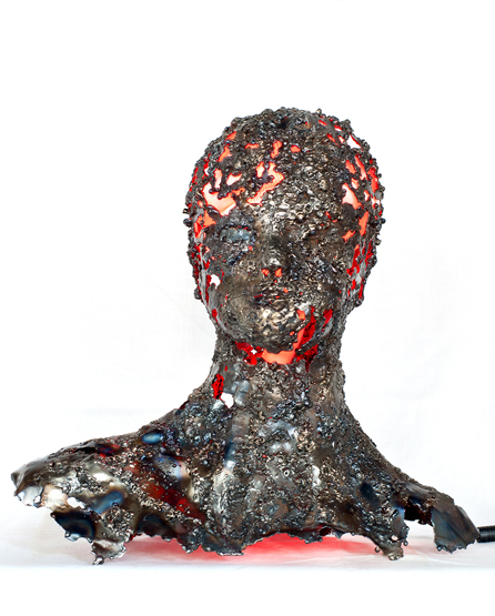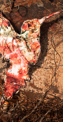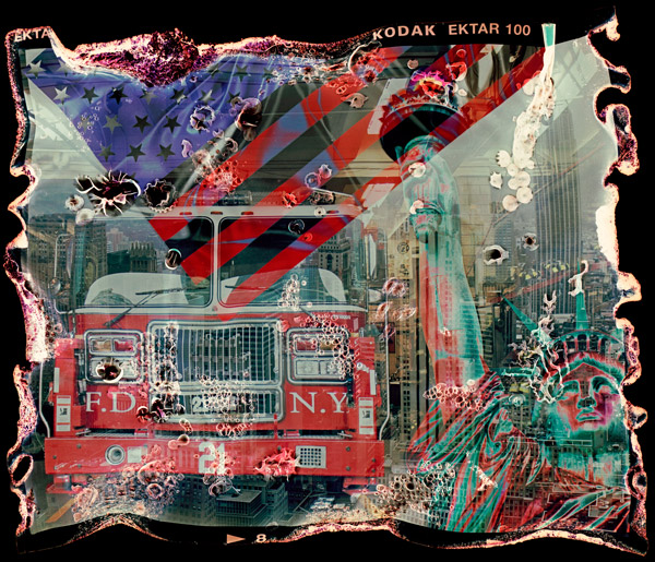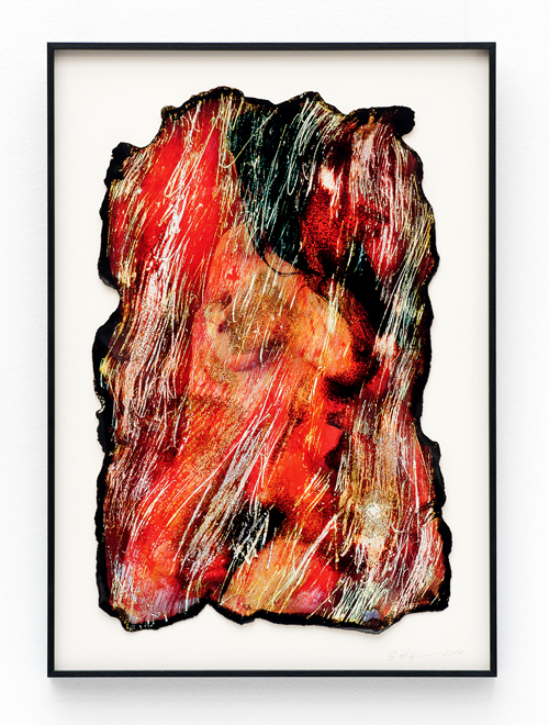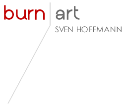 „burn art“ ist eine von Sven Hoffmann ausgetüftelte und kontinuierlich weiterentwickelte Technik zur Bearbeitung des Fotomaterials. Er fotografiert anolog, belichtet und entwickelt seine Filme in einem eigenen Labor. Mit Hilfe von Feuer brennt und schmilzt er sein Filmmaterial vorsichtig und gezielt an.